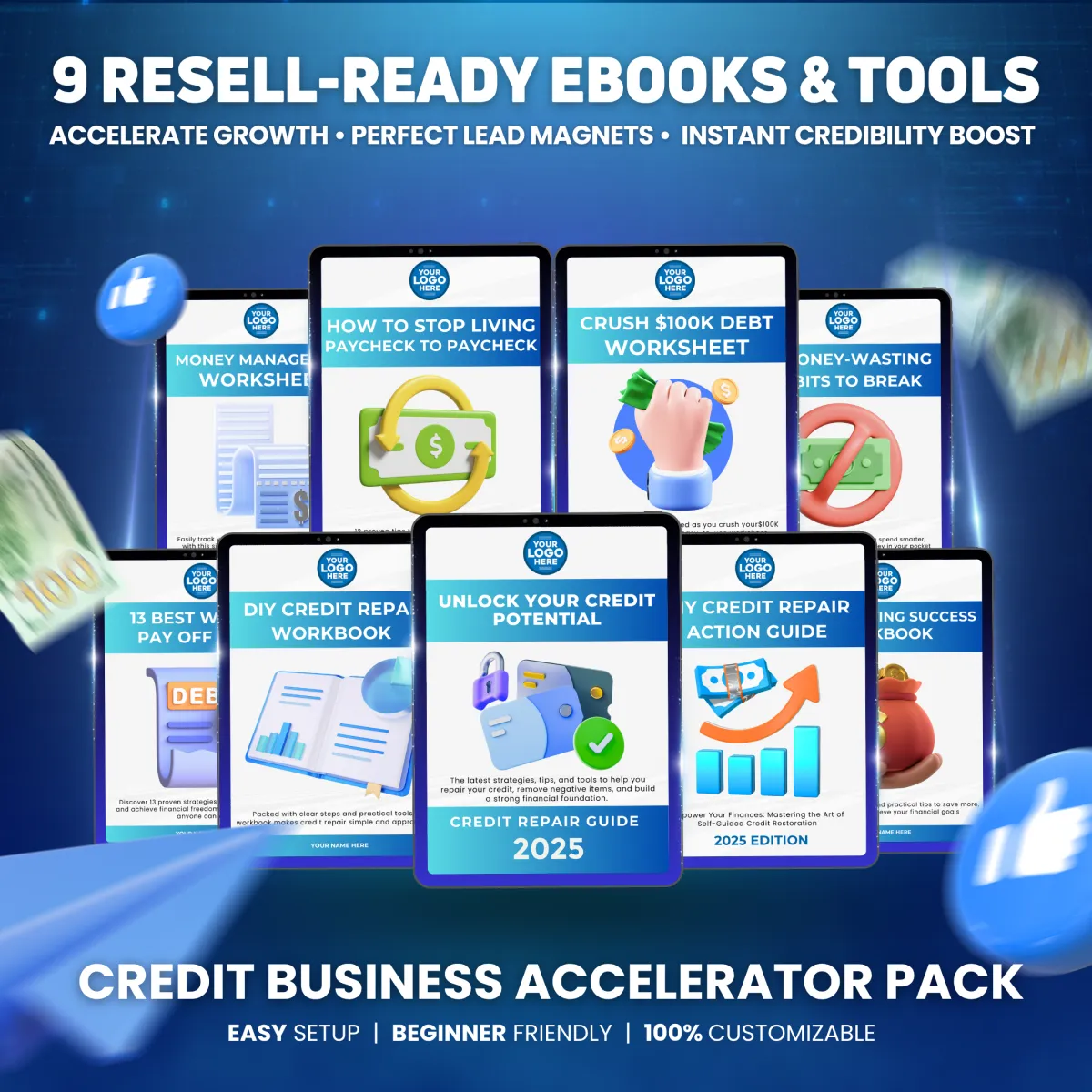 Credit Business in a Box is a complete digital resource library for credit repair professionals, coaches, and entrepreneurs. We offer ready-made, fully customizable digital products—including eBooks, templates, courses, workbooks, and more—that you can rebrand, resell, or use to grow your business.